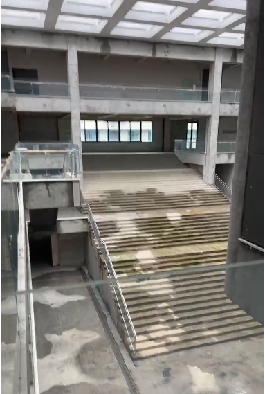 建筑美學:建筑內(nèi)部空間流動活潑,以多維度的層次感與流動性喚醒豐富的空間體驗;建筑外立面采用橫向條形玻璃窗與啞光藍色鋁板交替構(gòu)成,形成簡潔的現(xiàn)代韻律。同時中庭的空間構(gòu)架在光影交織中勾勒出虛實交錯的幾何敘事。