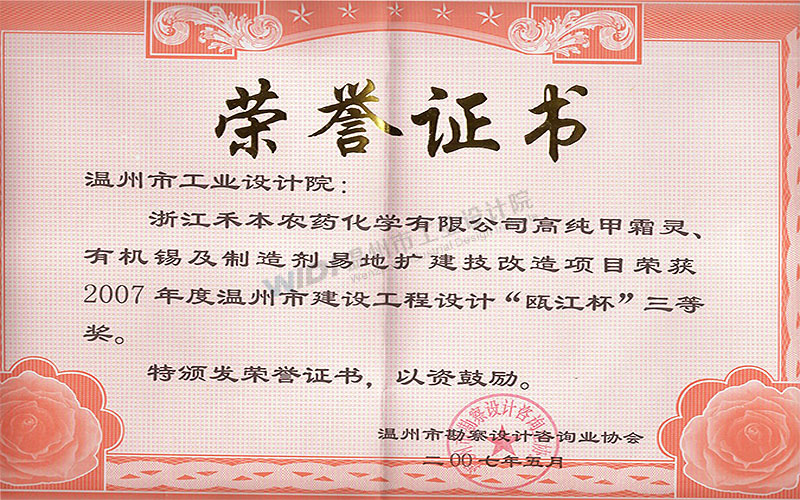 浙江禾本農(nóng)藥化學(xué)有限公司高純甲霜靈、有機(jī)錫及制劑異地?cái)U(kuò)建技改項(xiàng)目 甌江杯三等獎