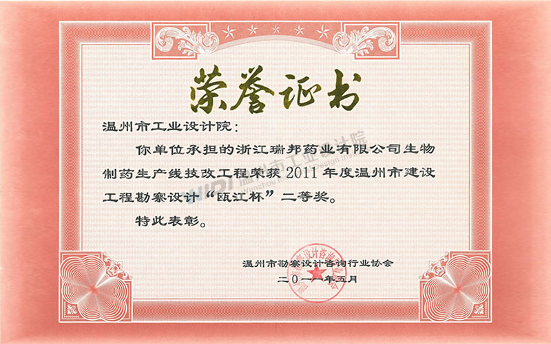 浙江瑞邦藥業(yè)有限公司生物制藥生產(chǎn)線技改工程設(shè)計(jì) 甌江杯二等獎