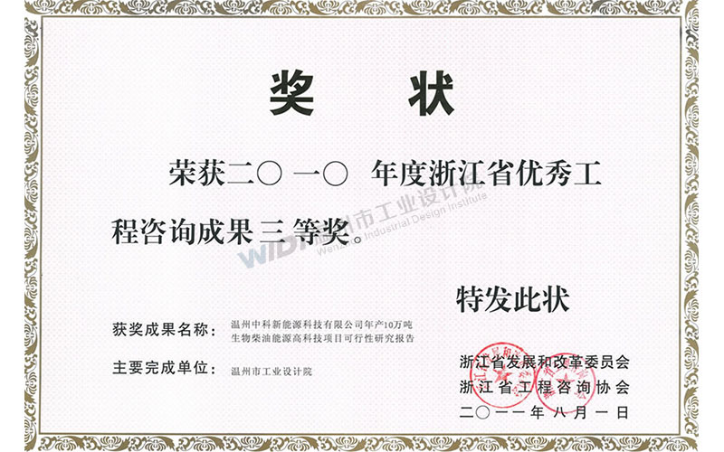 溫州中科新能源科技有限公司年產(chǎn)10萬噸生物柴油能源高科技項(xiàng)目可行性研究報(bào)告 省優(yōu)秀咨詢成果三等獎