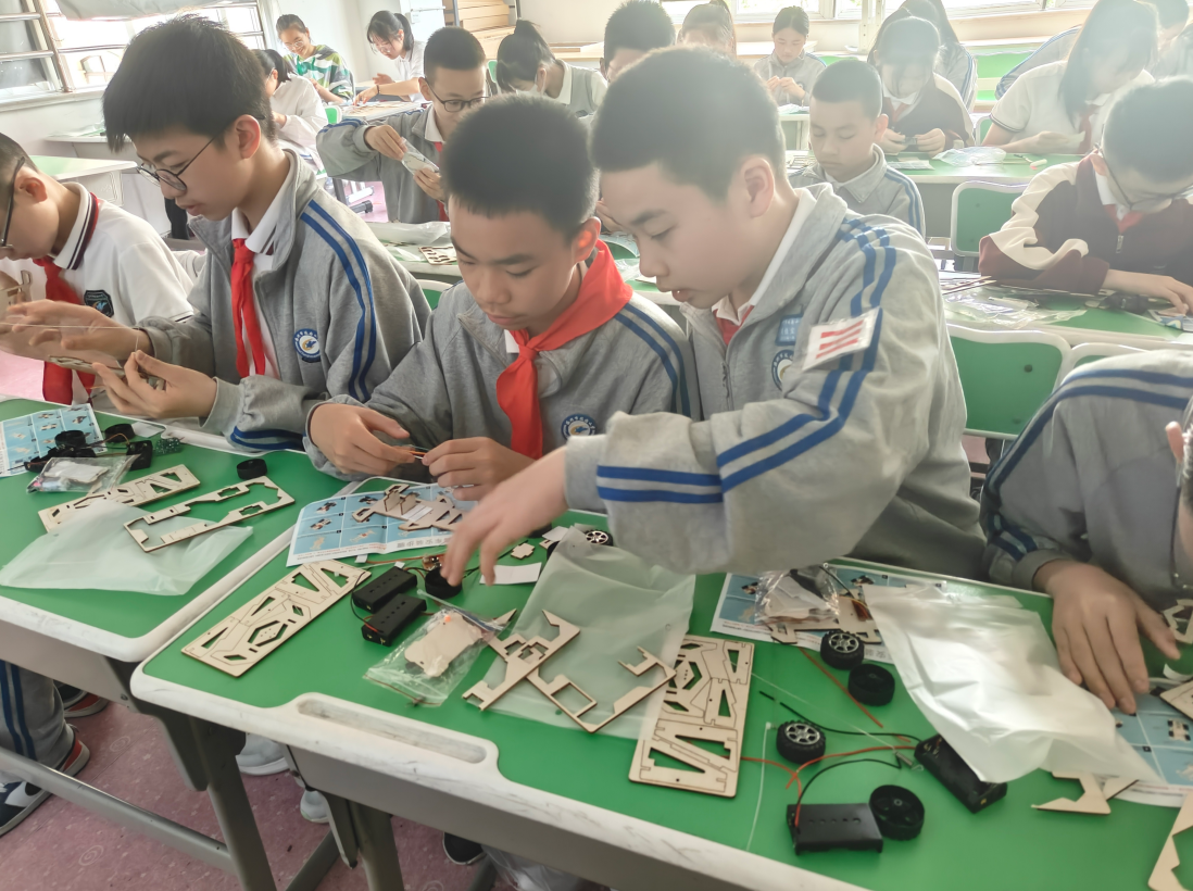學(xué)生們?cè)谥驹刚邆兊闹笇?dǎo)下,開展節(jié)能環(huán)保手工DIY活動(dòng)。大家親自動(dòng)手制作了簡(jiǎn)易的動(dòng)力小車、手搖音樂盒等作品,在不斷思考和創(chuàng)造的過程中體會(huì)廢舊物品的價(jià)值和再利用性。參與活動(dòng)的吳佳寶同學(xué)表示,通過這次手工活動(dòng),讓他明白原來只要發(fā)揮想象力和創(chuàng)造力,就可以將廢棄的物品變成有用的東西,從而減少資源的浪費(fèi),保護(hù)環(huán)境?!敖窈笠褜W(xué)到的環(huán)保知識(shí)運(yùn)用到日常生活中去,從小事做起,爭(zhēng)做環(huán)保小衛(wèi)士”,張涵程同學(xué)也表示。