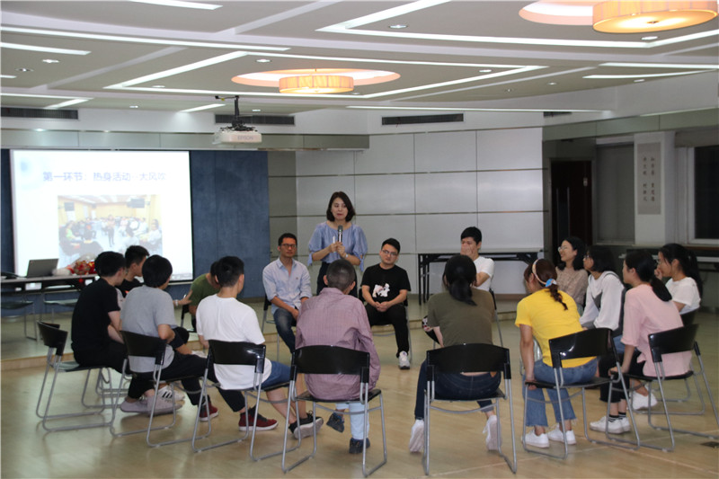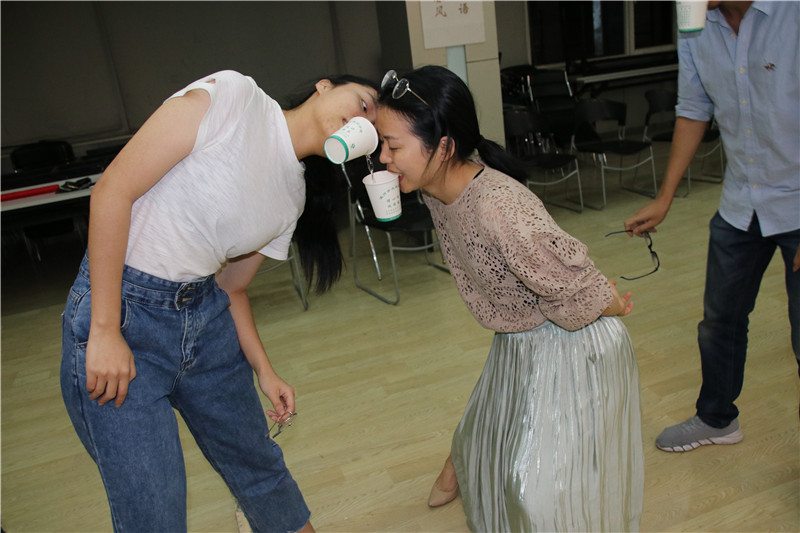 活動(dòng)在勵(lì)志歌曲“追夢赤子心”的音樂聲中拉開序幕。大家在指導(dǎo)老師的引領(lǐng)下,分成二個(gè)小組共同進(jìn)入“大風(fēng)吹”“請(qǐng)讓我為你按摩一下下”“優(yōu)點(diǎn)轟炸”“銜紙杯傳水”